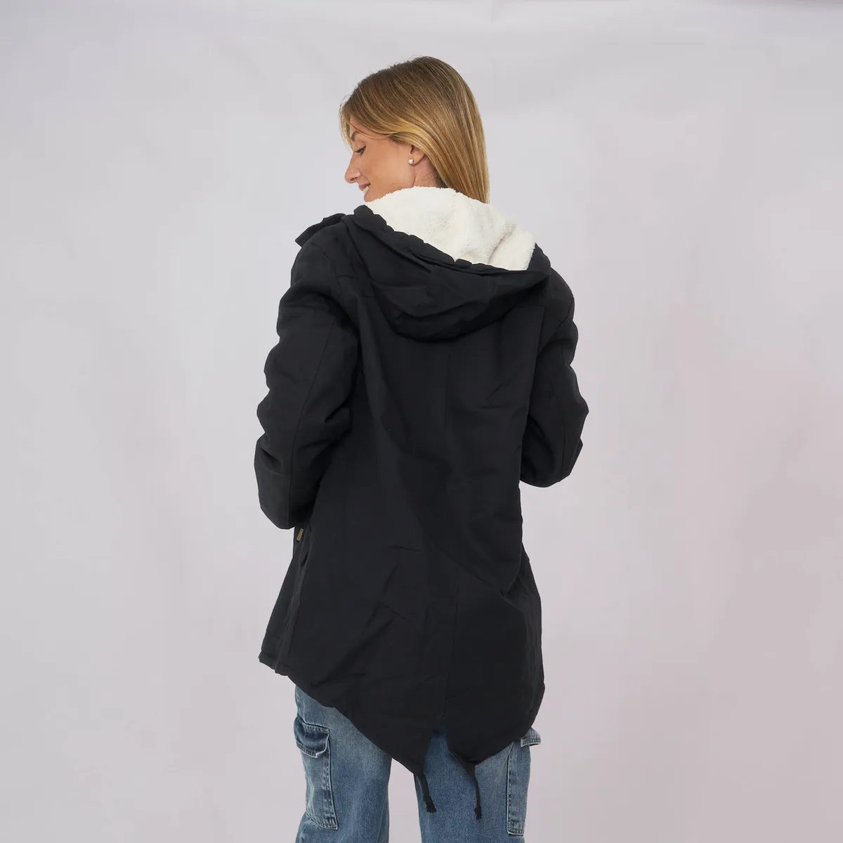 Nuestra PARKA PRAGA, esta confeccionada en gabardina verde/negro por fuera y en corderito sintético blanco por dentro, y viene con capucha. Trae tiras ajustables a la altura de la cintura, para hacerla más o menos entallada y su esplada cuenta con una terminación cola tiburon. En sus laterales inferiores trae bolsillos y un parche para poder customizarla!
